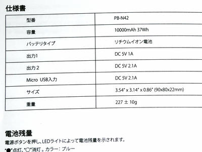 PB-N42自体は10,000mAhのモバイルバッテリー。