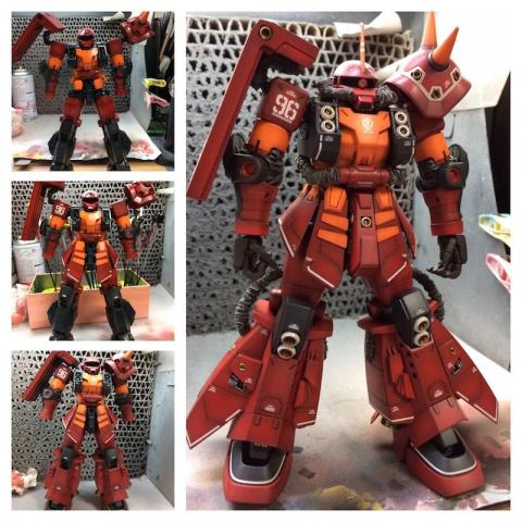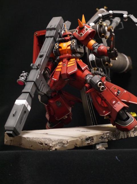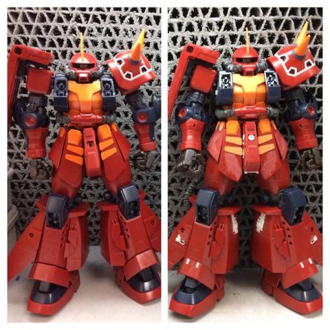 塗装はガイアノーツのピンクサフ → サザビーレッド → マホガニーでシャドー塗装 → ネオジオングレッドを使用しました。(サフ以外はクレオスのカラーです)