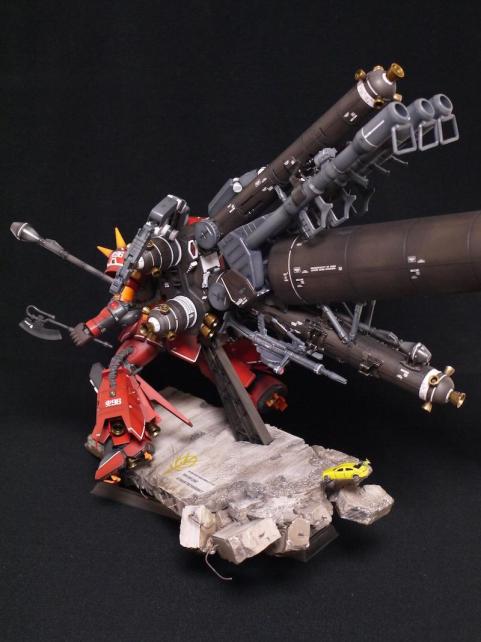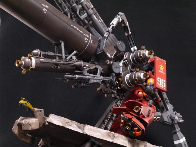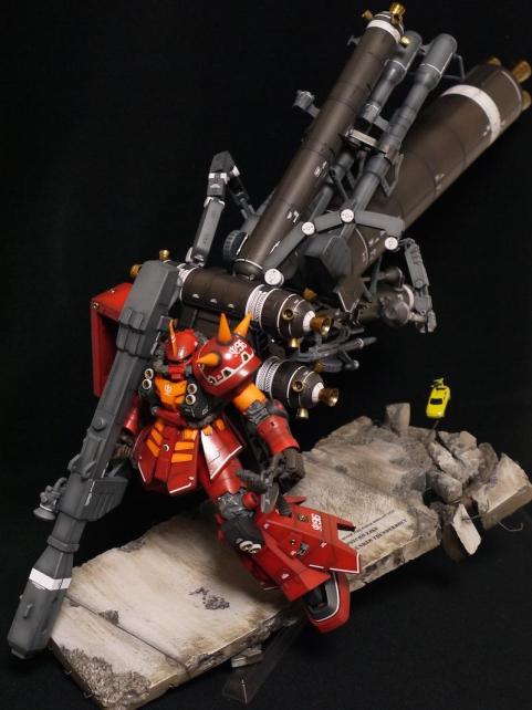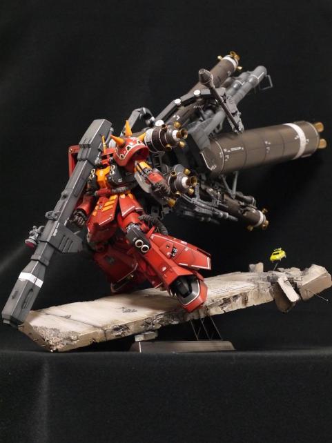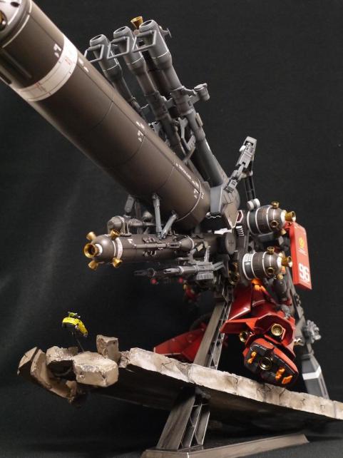 今回キットに手を入れた場所は一部だけです。しかし背面装備の強烈なインパクトのため、手を入れた場所が霞んでしまい完全に徒労に終わった感じですね…。 本気で手を入れないと改造箇所が目立たない現状を完成後に実感しました (;´д`)トホホ…