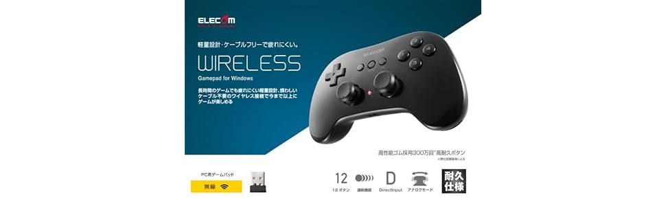 高耐久ボタンを搭載 小型軽量タイプの12ボタンワイヤレスゲームパッド