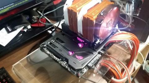殻割りしているチームは5.0GHz程度なら空冷でも行けるみたいだが、私の環境では無理そうだと、ベンチ台から水冷に変更した。