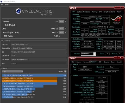 CPU1.280V、CPU-Z読みで1.296V程度で、私のKabyちゃんはCHINEBENCH r15程度の軽いベンチであればあっさりパスしてくれた。