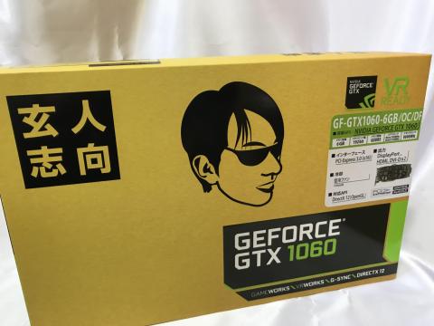 玄人志向オリジナルモデルのオーバークロックタイプです。上を見ればキリがありませんが、現実的なところでGTX1060にしました。