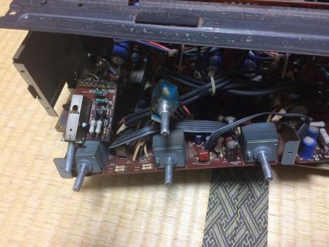 フロントパネルは2重になっていて、順番にはずしてようやくボリューム基板にアクセス。