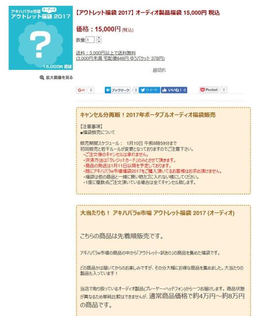 販売開始数分前に急に思い立って買うことにしたのですが、ここの福袋はいずれか1点のみ購入可というものであり、どれを買うかは予め狙いを定めておく必要がありました。最安値は1万円で、私が狙うとすればそれか、その上の1.5万円または3万円というところです。1万円は商品説明を読むと当たり外れが激しそうでしたので、比較的無難そうな1.5万円を第一希望として購入することにしました。ちなみに1.5万円の商品説明は以下の通りです。