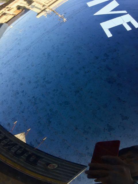 これは施工前。一般道を走っていると、排ガスもそうですけど、排ガスに残るオイルがついていきます。