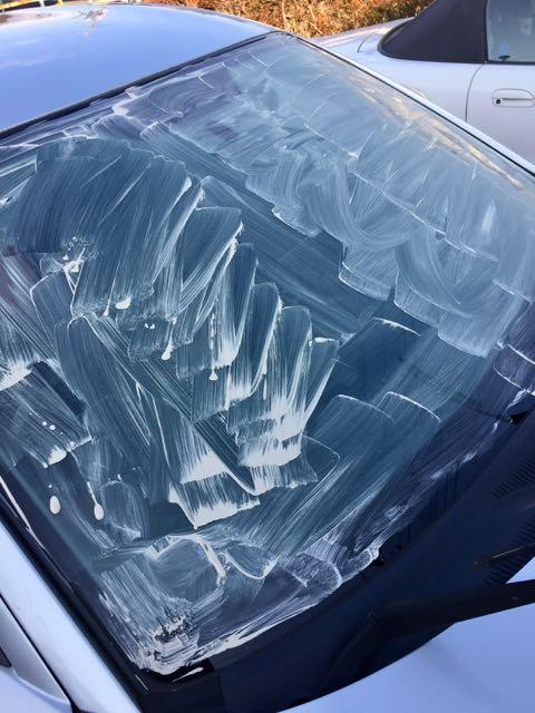 研磨後にガラコを施工。表面に塗布した後に10分感想。のちに乾いたタオルで綺麗に拭き取ります。