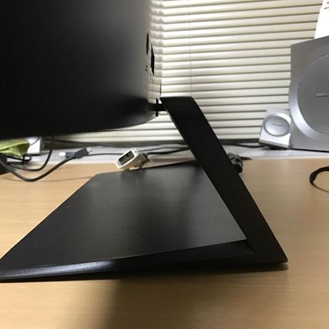 モニター下部~設置床の隙間は90mmあります。高さ調整出来ないので人によりマイナス点となるかもしれませんね。スタンドはしっかりモニターを支えていて軟弱さは感じません。