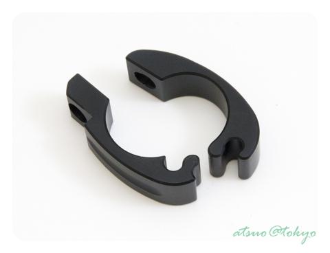 対応するパイプ径は 22.2mm~25.4mm(7/8~1インチ)となっており透明なスペーサーが付いてきましたが、ハンドルバーを挟み込む部分がガバッと開くタイプで無いため実際はどの程度までしっかり取付けられるかちょっと疑問です。