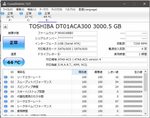 7200rpm品でキャッシュ64MBの東芝なら当たりだったかもしれません。