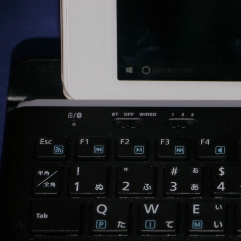 左上には電源LED、Bluetooth/有線切替えSW、3機種記憶SWが並んでいます。