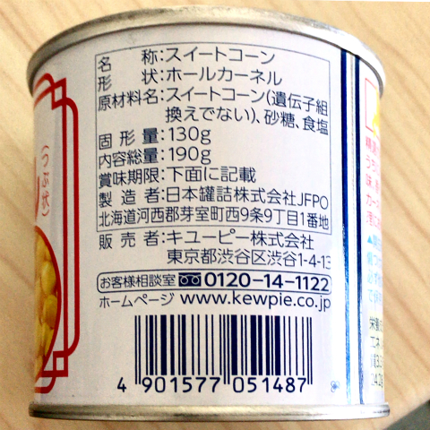 アヲハタ 十勝コーンホール M2号缶(EO) 190g です。