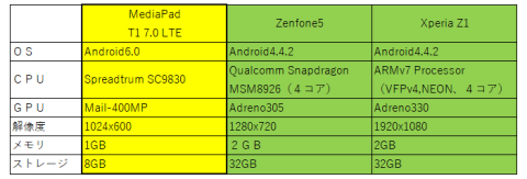 【HUAWEI MediaPad T1 7.0 LTEスペック】