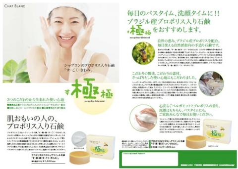 プロポリスにこだわってつくった石鹸、「す・極・極(す・ごく・きわみ)」は、プロポリス専業メーカー、シャブロンがその経験と技術を生かして作った、こだわりのプロポリス入り石鹸です。