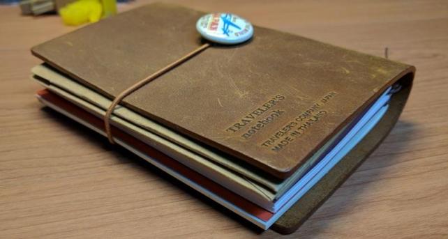 「手にとって旅に出たくなる」をテーマに作られた革カバーのノート。