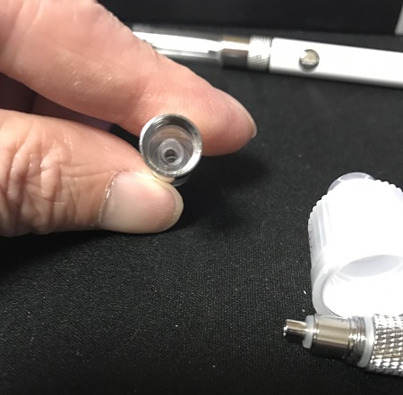 リキッドを注入するときは真ん中の穴につまようじを挿してから注入すると、