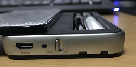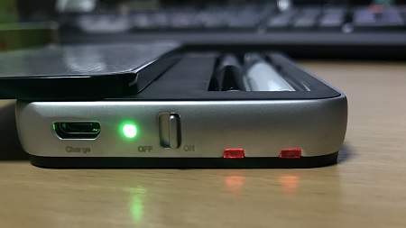 右下部に赤LED2個がEMILIの充電状態(赤なので充電中。緑になれば満充電)