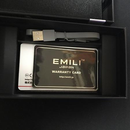 充電時間は、充電ケース3時間。EMILI本体は1時間だそうです。