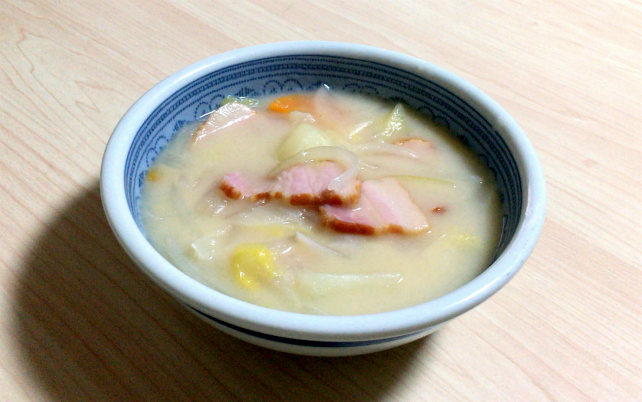 んな訳で、今夜はニチロの「一本吊りベーコン」を使って「ベーコンシチュー」を作ってみました。
