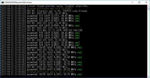 だいたい33~34MH/sのハッシュレートでマイニングしてくれているようです。