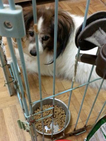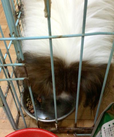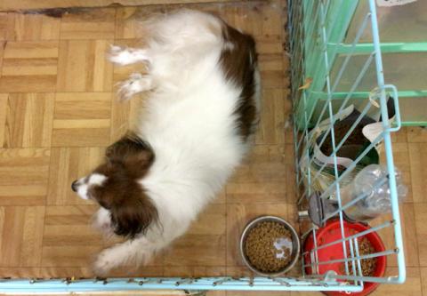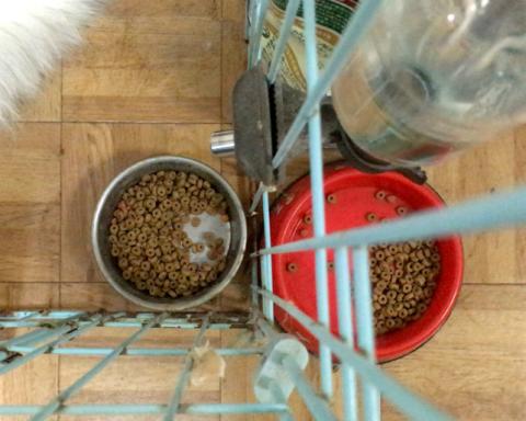ステンレスの皿の餌は「大きいワンコ」の物。