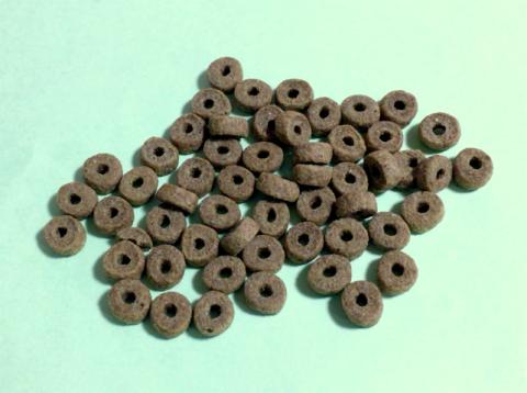 直径が5mmくらいの小さなドーナツみたいな形の餌です。