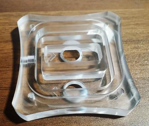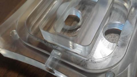 かなり肉厚のアクリルトップで、削った後はある程度成らしてはあるものの鏡面加工とは程遠い。