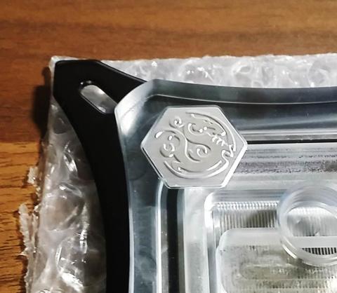 違いはアクリルトップのデザインで、Bitspowerのマークがアクリル彫刻から、左端にエンブレムの位置がづれてメタル素材になり、LEDを仕込む穴が5mm1カ所になっただけっぽい@@