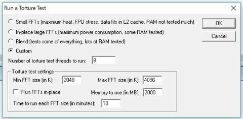 テストソフト:Prime 95 時短設定