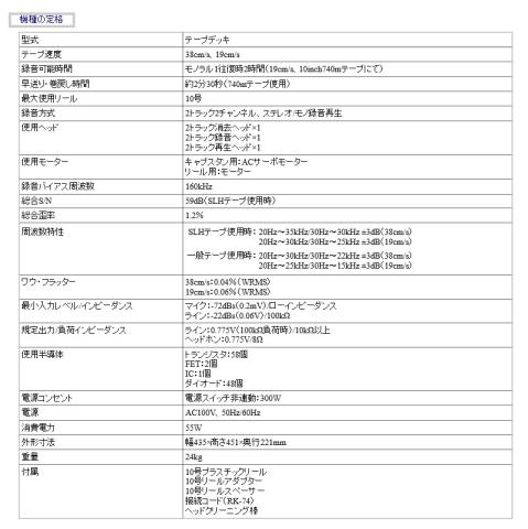 走行系が38CM/SECのスペック クレーム返品か店頭戻りか不明だったけど多分7万円くらいで購入した でもトラブルもちで時々停まらないでテープ絡んだ オーディオヘッドもフェライトで音は良くなかった 数年使って大学に入った甥にテープも一緒にあげてしまった 高音が意外に出なかったけどやたら重いので弄る気にも為らなかった バイアス調整すれば直ったかな? フェライトヘッドはヘッド磨耗がシビアーに録音特性に出ましたね FM放送以外にはソースが無いので宝の持ち腐れでした メカがプランジャーでガチャンガチャン五月蝿くてあまり使う気には為りませんでしたし実際使用時間は短かった。