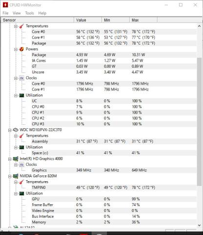Battlefield4を低画質で少しの時間動かしたときのHWMoniter読みの温度です。