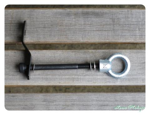 そして折角(?)なので反対側に何か引っかけられるように輪っか(アイナット)を取り付ける事にしました(しばらくしたら普通のナットにしちゃうかも(^^; )