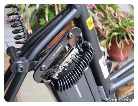 こちらも自転車から離れる時にワイヤーを通す事で、自転車に着けたままにしておく事が出来ます。