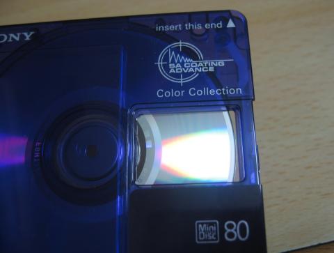 ディスクには再生専用ディスクと録音用ディスク、ハイブリッドディスクの3種類が規定されていて2000年代以降に流通しているディスクはほとんどが録音用ディスクです 再生専用ディスクはCDと同様の構造の光ディスクで録音用ディスクと異なりシャッターがディスクの裏側のみにある。CDのように既成曲の入ったパッケージメディアが主にソニー・ミュージックエンタテインメント (日本)(現:ソニー・ミュージックレーベルズ)を中心に発売され、一時期はオリコンチャートも実施されていたが、以下のような理由で普及せず1999年(平成11年)に発売が打ち切られた。