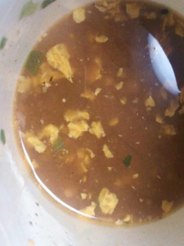 さて、しっかり混ぜてから、まずは一口スープからお味を確認してみますとぉ~~~……ずずずずず…