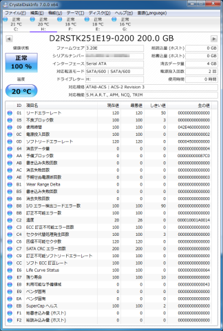 まずはCrystal Disk Infoの表示を確認してみましょう。