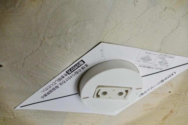 両面テープも奢られており、器具とテンプレートを合わせる形で天井に貼り付けてから