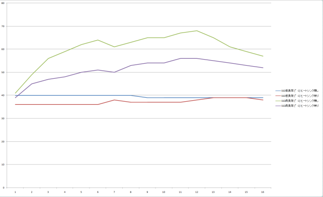 高負荷時はの温度変化は、まるで空冷から水冷にしたような劇的ビフォーアフターですね^^