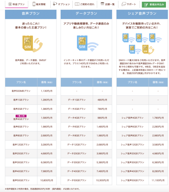 オプションレス 2GB契約 月額1380円で運用開始でございます