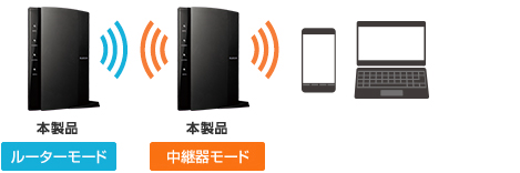 本製品を中継器モードに変更することで、Wi-Fiの電波が届きにくい場所も快適にインターネットができます。