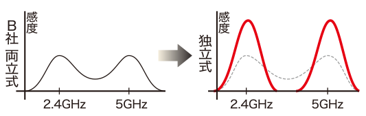 5GHz帯 : 36,40,44,48,52,56,60,64,100,104,108,112,116,120,124,128,132,136,140ch 伝送方式 IEEE802.11ac : MIMO-OFDM方式