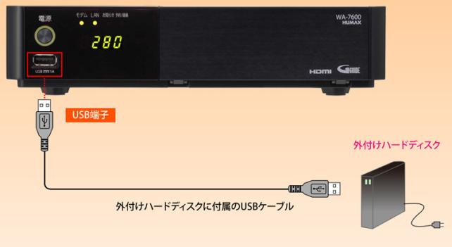 録画用の外付けハードディスクを接続します。