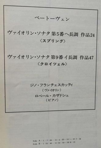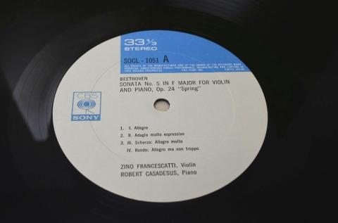 ベートーヴェン ヴァイオリン・ソナタ「スプリング」「クロイツェル」CBS/SONY SOCL1051 1975年頃発売