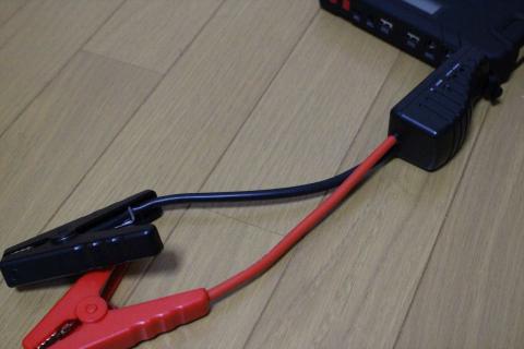 ジャンプスターターは、このようにして使います。ケーブルは短めですが、モバイルバッテリーを車のバッテリーなどの上に置けば、ケーブルの長さは問題ありません。