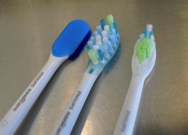 この2種類のブラシを朝夕・もしくは日毎に取り替えつつ歯磨き作業をすることをフィリップスは推奨しているのだと感じました。