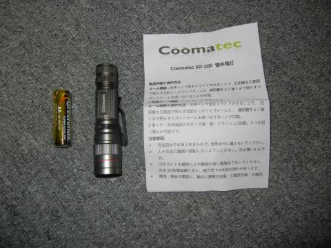 この懐中電灯Coomatec S-200は単三乾電池1本で使用でき、とてもコンパクトで携帯性が良いのですが、非常に明るく、街灯の無い夜道の歩行には大変便利です。