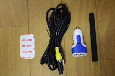 替えの粘着テープ、電源ケーブル、シガーチャージャーなどが付属しています。