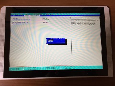 Action Keys Mode をDisabledに変更するとファンクションキーが有効となり、