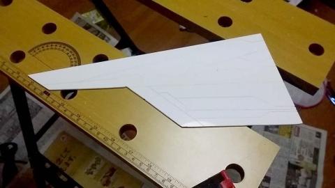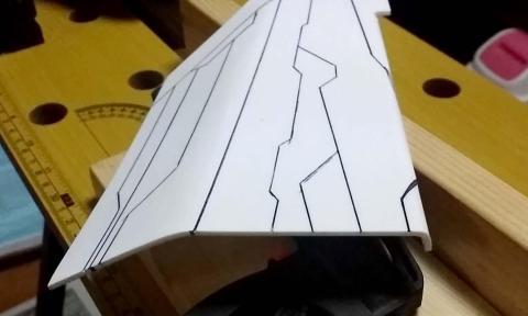 試作アクリル曲げ機のアルミパイプが熱膨張で激しく曲がってしまったので、仕方がなくヒートガンで曲げ、筋彫りを掘ってみる。