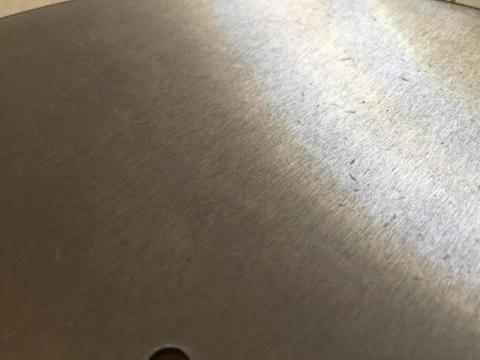 こちらは裏面で、表面加工等はありません。一応ヘアラインのように見えなくもないのですが、細かな傷などもあり特に美しいものではありません。